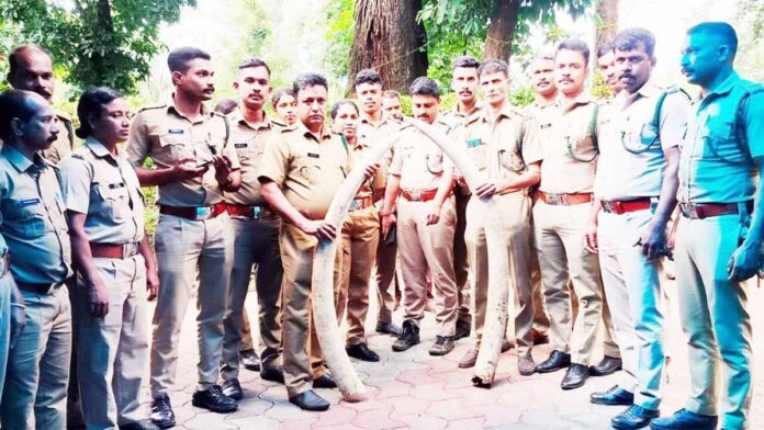 സുല്ത്താന്ബത്തേരി: വയനാട് മുത്തങ്ങയിലെ പൊന്കുഴിയില് 27 കിലോ തൂക്കം വരുന്ന രണ്ട് ആനകൊമ്പുകള് വനം വകുപ്പുദ്യോഗസ്ഥര് പിടിച്ചെടുത്തു. മുത്തങ്ങ റെയ്ഞ്ചിലെ പൊന്കുഴി സെക്ഷന് ഫോറസ്റ്റ് ഓഫീസര്ക്കു ലഭിച്ച രഹസ്യവിവരത്തിന്റെ അടിസ്ഥാനത്തിലായിരുന്നു പരിശോധന. സംഭവവുമായി ബന്ധപ്പെട്ട് ആറു പേര് അറസ്റ്റിലായിട്ടുണ്ട്. മുത്തങ്ങ പൊന്കുഴി കോളനിയിലെ സുനില്(21), ശിവപ്രസാദ്(25), രാജു(25), ചെട്ടിയാലത്തൂര് തിണ്ടങ്കര കോളനിയിലെ ബാബു(20), കുമഴി കാട്ടുനായ്ക്ക കോളനിയിലെ ബിജു(20), കല്ലൂര് 67 കാഞ്ഞിരക്കടവ് ബാലു(58) എന്നിവരെയാണ് വനം വകുപ്പ് പിടികൂടിയത്.